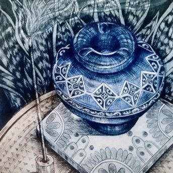 Deciduus Gallery is pleased to welcome Kris Waldin to our creative team. Based in ÅŒtautahi Christchurch, Kris works across drawing, painting, and printmaking with great skill. Her art explores memory, connection, and the quiet appeal found in everyday objects. Many of her drypoint etchings feature found items, botanical shapes, and family history. With a background in graphic design and illustration, Kris brings careful detail and a gentle approach to her work, whether representing the real world or taking a more abstract direction.