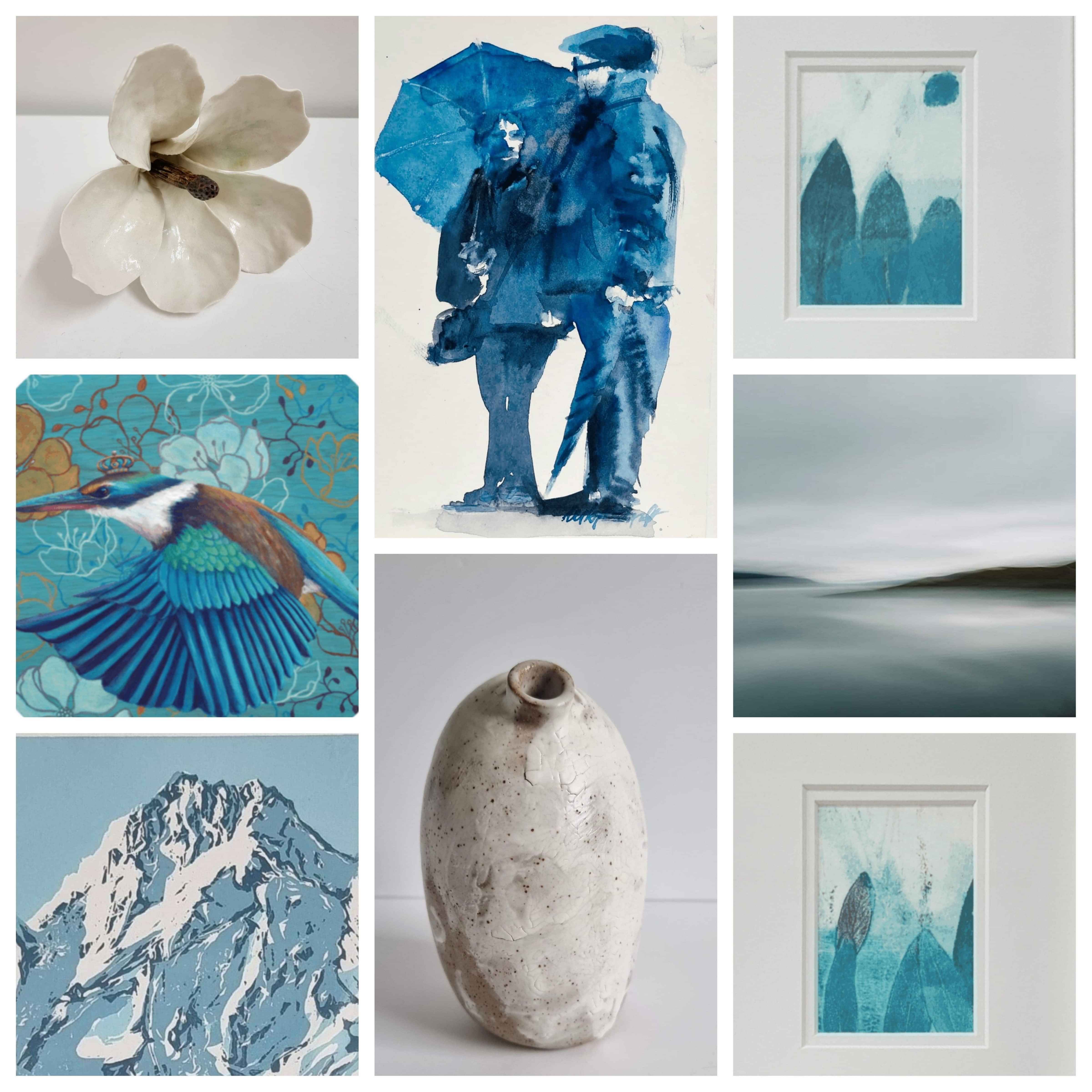 A burst of fresh blues & whites for our featured collage. Featuring The Painted Cloth Studio, Trish Seddon, Tracy Stamatakos, Mila Renault, Michelle Connolly, Nic Tucker & Jo Gallagher.