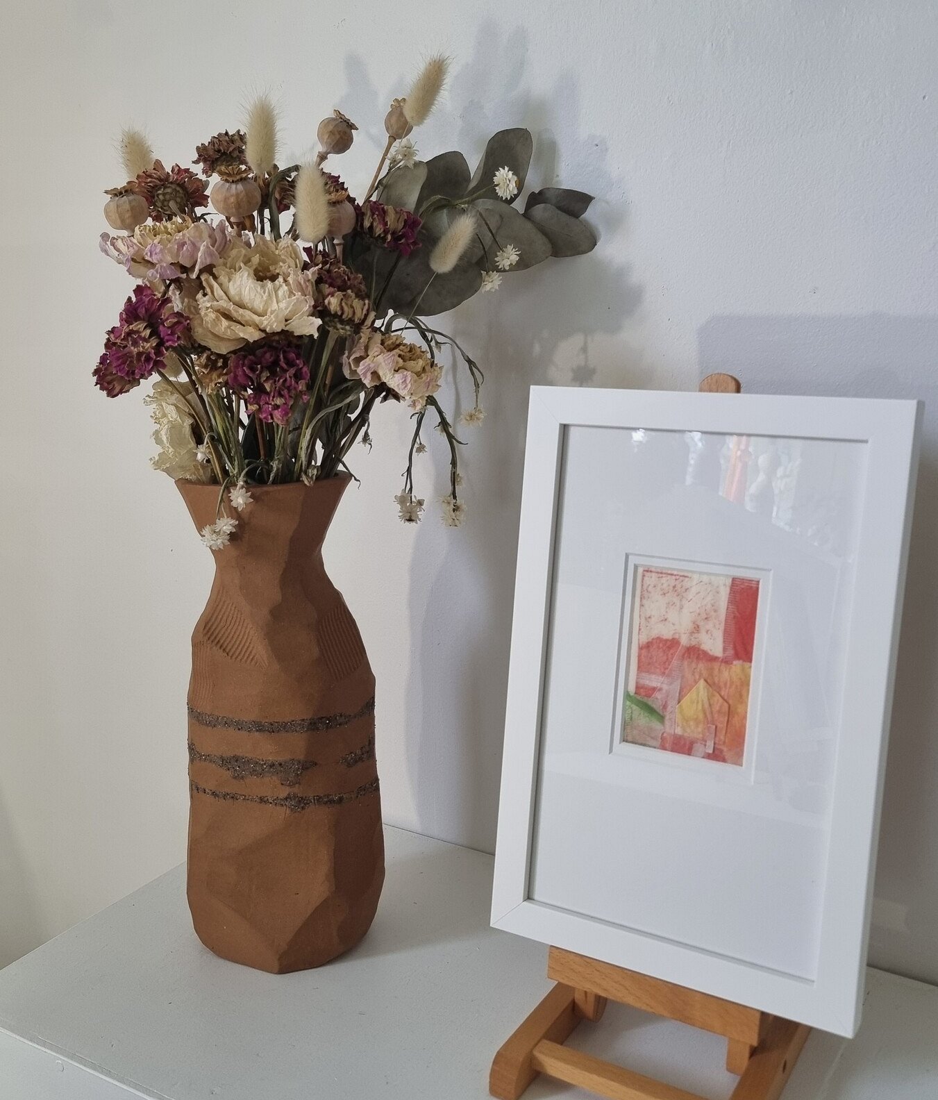 The Architecture of Memory explores layering—paint built slowly over time, teabags pressed between paper, and clay shaped by hand. Each layer holds traces of memory, home life, and everyday experience, where past and present meet in quiet reflection.