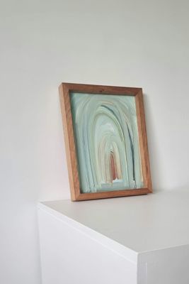 Small original abstracts carrying texture, presence, and the essence of Santie’s larger works. These condensed Threshold originals explore movement, layering, and reflective mark-making, responding to an earlier piece, High Tea.