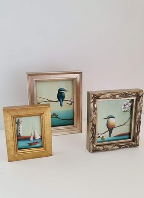 Original acrylics on custom wood, framed in solid timber, representing key Threshold works. These pieces carry the weight of experience, memory, and reflection, forming the anchor of the exhibition.