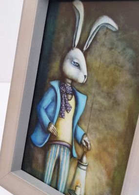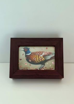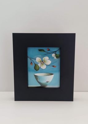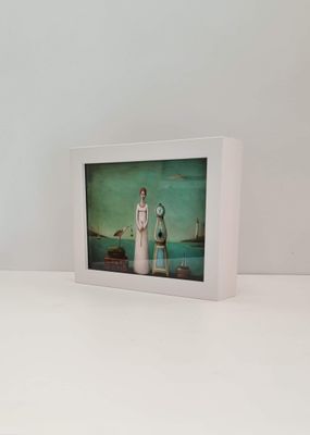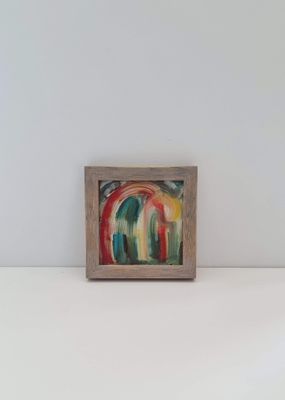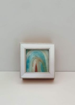 Small, vibrant paintings on reverse glass responding to early chapters and Threshold originals. Layers and colour interplay, create depth, dialogue, and intimacy in miniature form.