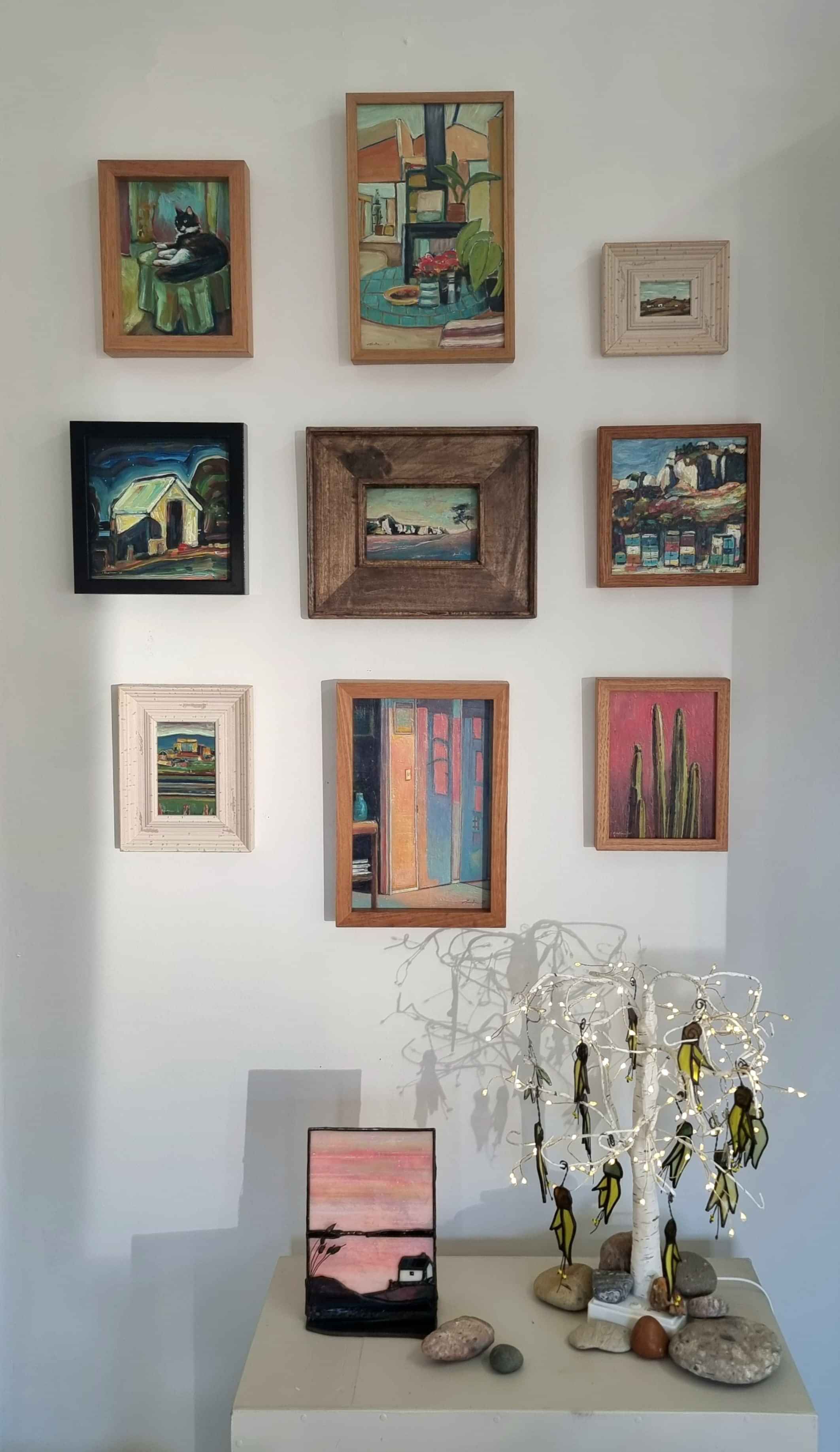 A collection of small framed artworks inspired by joyful and uplifting moments at home and the South Waikato region.