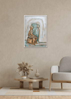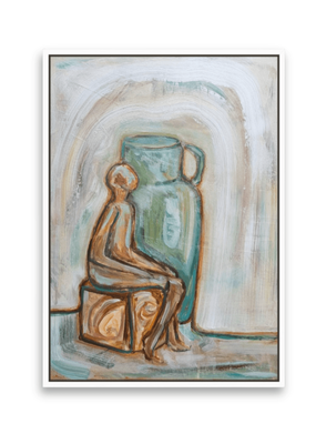 Medium: Acrylic on canvas framed in a white timber tray frame.