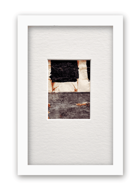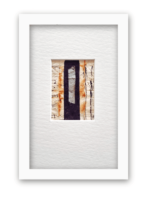 Medium Mixed Media Collage Tea Bags, Paper & Ink framed in white with a single mattboard. All these works have the same Matt Window Size. Slightly larger than series #2 - The outer frame size is the same. Can be purchased as a set of 5 for $1000 or individually at $225 each.