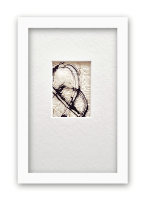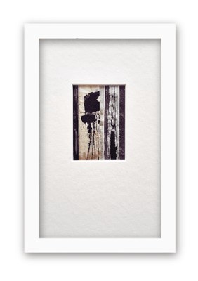 Medium Mixed Media Collage Tea Bags & Ink framed in white with a single mattboard.