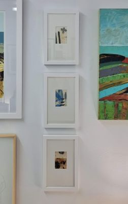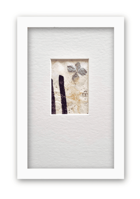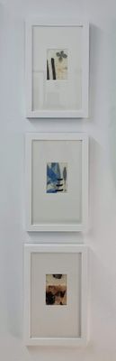 A dainty set of three small abstract works made from tea bags, Japanese paper and ink.