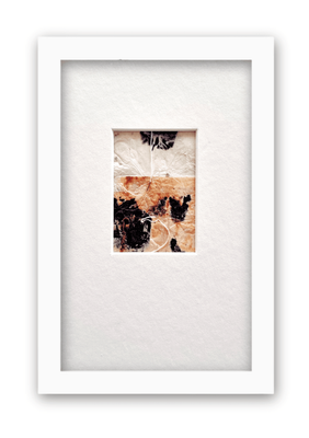 Medium Mixed Media Collage Tea Bags & Ink framed in white with a single mattboard.