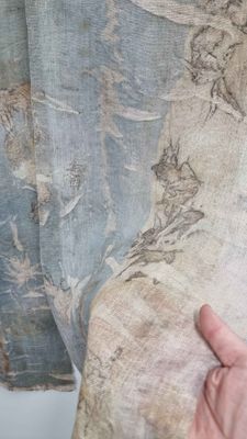 Fragrance, texture, colour, and energy are all thoughtfully considered when creating Jo Muir's bespoke textile and ritual pieces. Using only natural botanical dyes, these creations emit an energy that is calming, grounding, and deeply connected to the earth's essence. For Jo Muir, creating art is like a form of prayer, a direct collaboration with the natural world. Each piece offers a distinctive impression, capturing a specific moment in time. It represents the culmination of everything before it, originating from the earth and expressed through her in a tangible form. This process is a genuine partnership with Gaia, the spirit of the Earth. Nothing is ever rushed; Jo allows each part of the process to naturally unfold and reveal itself to her. When she unveils her botanically dyed bundles, she intuitively knows how to craft them into unique creations that reflect the beauty and serenity of nature.