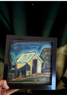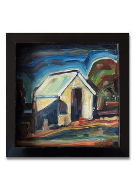 Medium: Acrylic on panel, framed in a high glossy background frame.