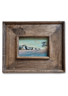 Medium: Acrylic on panel, framed in a wide solid timber frame profile.