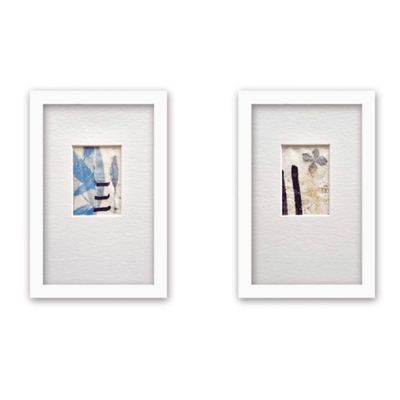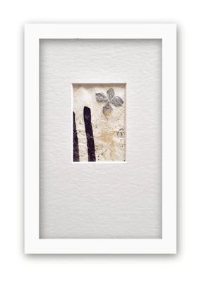 A dainty set of two small abstract works made from tea bags, Japanese paper and ink.