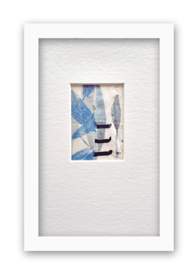 Medium Mixed Media Collage Tea Bags, paper & Ink framed in white with a single mattboard.