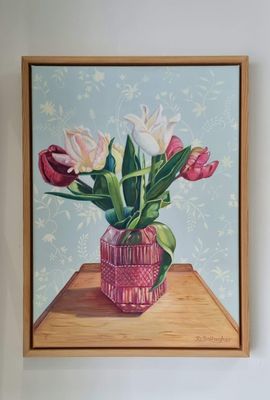 Medium: Acrylic on stretched canvas, framed in a natural timber tray frame. Ready to hang.