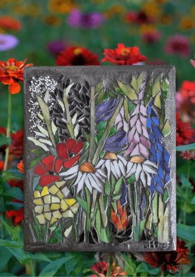 New pavers/door stop collection: Add a touch of colour to your garden or use as a door stop. These beautiful mosaic stained glass pavers by Hilary are 'one-off' designs with no two alike. Sealed and treated for outdoor use.