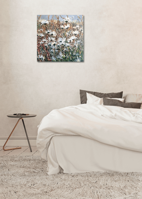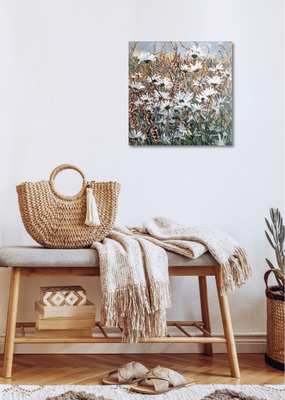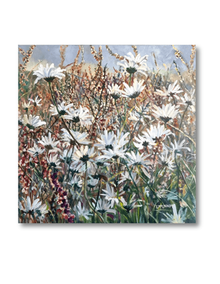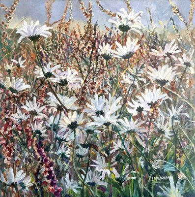 Lindy McLachlan paints from her studio, nestled in the serene hill country farm of rural Pahiatua. She has a deep love for gardening and is captivated by the beauty of nature – from lush plants and blooming flowers, to the humble grass and wild weeds. When she paints, it's as if she's right there in the garden, enveloped by the splendour of flora, striving to capture the essence of the communities within which they thrive. Fascinated by the natural growth of plants, she reflects on the human attempt to dominate our spaces, only to realise that the plants have their own rules, growing wherever they wish, in their own beautiful disorder.