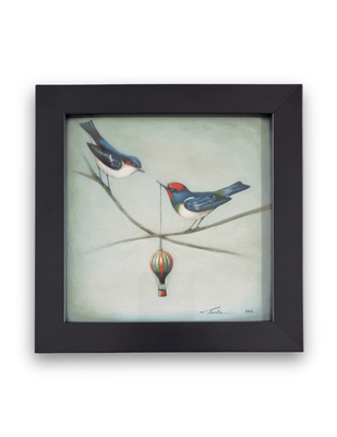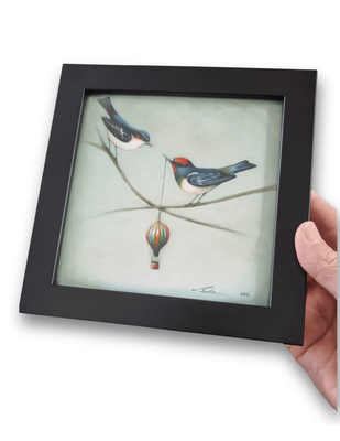 Framed Size: h180mm x w180mm x d23mm - framed in black with standard glass.