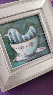 Framed Size: h110mm x w110mm x d15mm - framed in distressed silver.