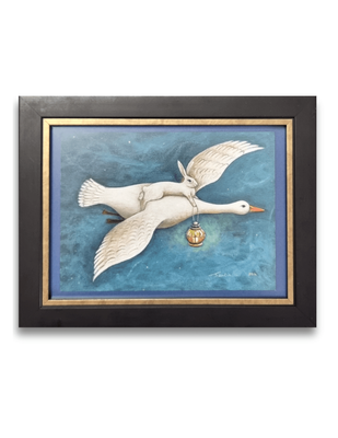 Framed Size: h185mm x w235mm x d20mm - framed in an Italian black with old gold trim with matt glass.
