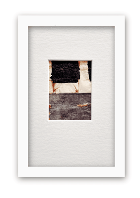 Medium Mixed Media Collage Tea Bags & Ink framed in white with a single mattboard.