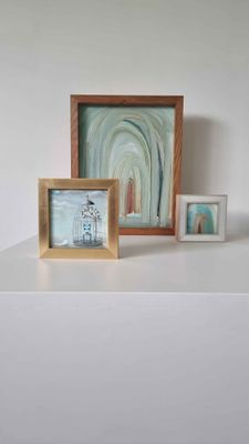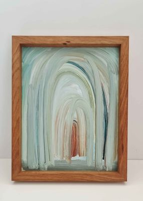 Threshold stands as an archway between chapters — a painting that partially conceals and reveals at once. Veiled layers hold fragments of earlier imagery while new gestures move across the surface with quiet authority. The work invites the viewer to step inside its space, reading memory and present time simultaneously. It is both passage and pause: a moment suspended where transformation becomes visible.