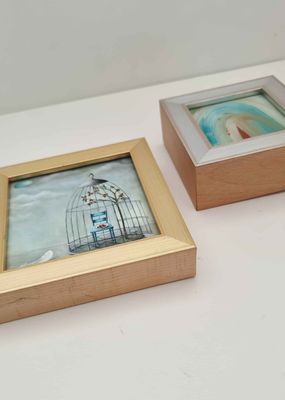 A tiny reverse glass painting responding to the original Threshold and Free Spirit mini print. Lively colours and textures echo earlier chapters while creating a fresh, intimate visual dialogue.