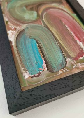 Tactile, layered, and quietly powerful — a condensed Threshold original, carrying the texture and presence of the Anchor series in miniature form while responding visually and conceptually to High Tea. The three significant curves create a flowing rhythm, evoking reflection and resonance.