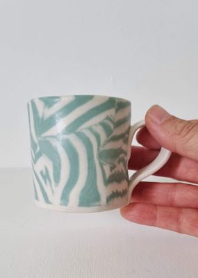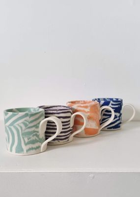These Nerikomi mugs are crafted by layering coloured clay to create distinctive patterns throughout the porcelain. Each piece reveals its own unique composition, making every mug one of a kind. Only one in each colour available.
