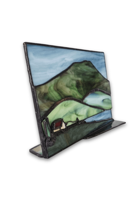 A coastal structure rendered in layered glass, referencing a working shoreline. One-off original design. Each work begins with the glass, the image discovered rather than imposed, emerging through its patterns and movement. Certificate of authenticity provided.