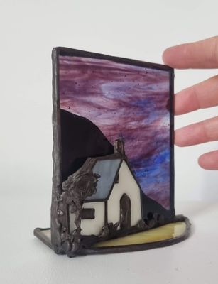 A quaint little rural church capturing a quiet end-of-day atmosphere. One-off original design. Each work begins with the glass, the image discovered rather than imposed, emerging through its patterns and movement. Certificate of authenticity provided.