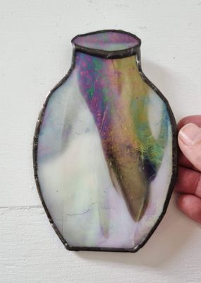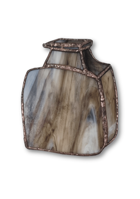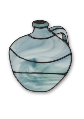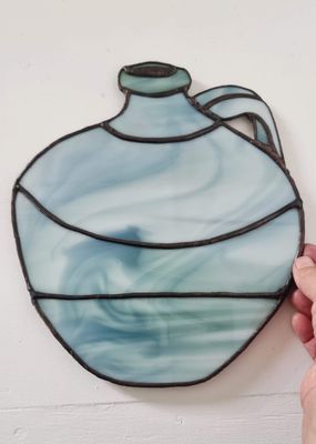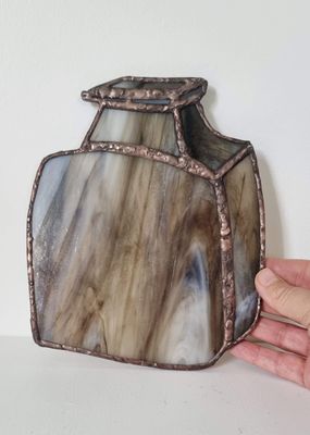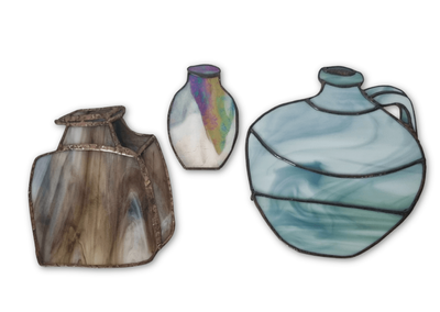A set of three vessels created as an homage to the artist’s father, a potter known for his slab-built forms. These pieces translate that weight and presence into stained artglass, shaped and assembled by hand. Each form reflects a quiet sense of lineage and making.