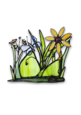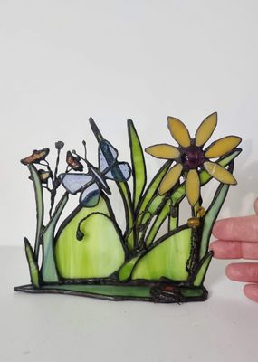 A three-dimensional sculptural landscape reflecting the relationship between land and sustenance. Constructed from layered stained artglass with dimensional form and fine detailing. One-off original design. Each work begins with the glass, with the image discovered rather than imposed, emerging through its patterns and movement. Certificate of authenticity provided.
